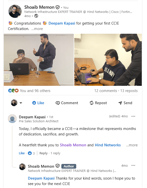 Within a year, Hind Networks gained recognition for its high-quality Cisco certification training and authentic lab infrastructure, establishing itself as a trusted brand among CCNA, CCNP, and CCIE aspirants.